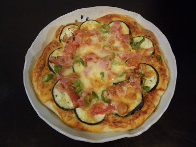 普通の丸パンとパン生地に具をのせて焼いたピザパンです。