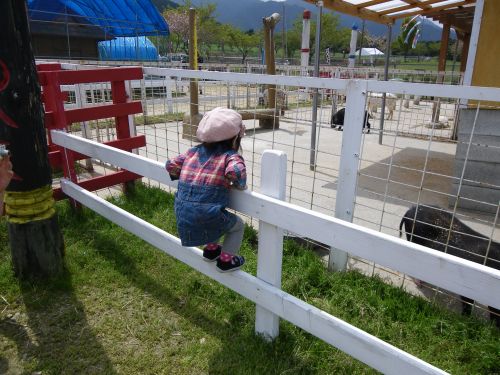 柵にのぼりブタちゃん見学GWも終わりましたねー。